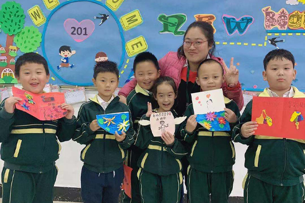 您是一座桥,为我们连接通往世界的路;您是一根青藤,带领我们攀登世界的最高峰,我们学会的每一个单词、每一句对话里,都渗透着您的汗水和心血,让我们把最美丽的贺卡,送给我们最可爱的外教老师。